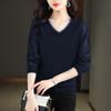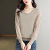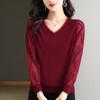 Herbst Spitze Ärmel Gestrickte Basis Pullover für Mittleren alters Frauen Tragen V-ausschnitt Pullover Dünne