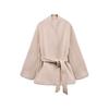 Elegante Damen Einfarbig V-Ausschnitt Bindegürtel Wolljacke 2025 Neue Mode Klassische Langarm Mäntel Herbst Schick Weibliche Streetwear