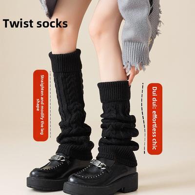 Stacked Socks Women'S Medium Tube Y2K Harajuku Knitted Twist Leg Cover Summer With Small Leather Shoes Stockings