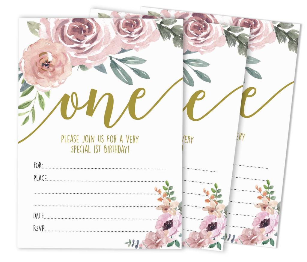 Inkdotpot Blumenmädchen Erster Geburtstag Einladungen, Ausfüllstil Party-Einladungen mit Umschlägen 30er Pack, 5x7 Zoll