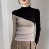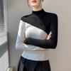 Halbhoher Strickpullover für Damen Herbst- und Winterdesign Sense Pullover Slim Fit Color Blocked Basisshirt