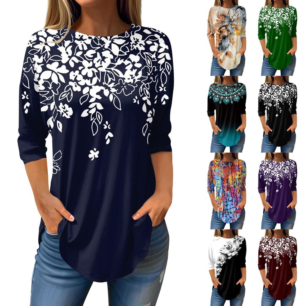 Damen-T-Shirts, 3/4-Ärmel, einfarbig, Pullover, Sommer, Frühling, Tops, Blusen