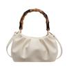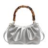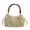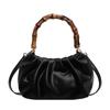 Feste PU Plissee Handtaschen für Damen Bambusgriff mit Reißverschluss Schnalle Mode