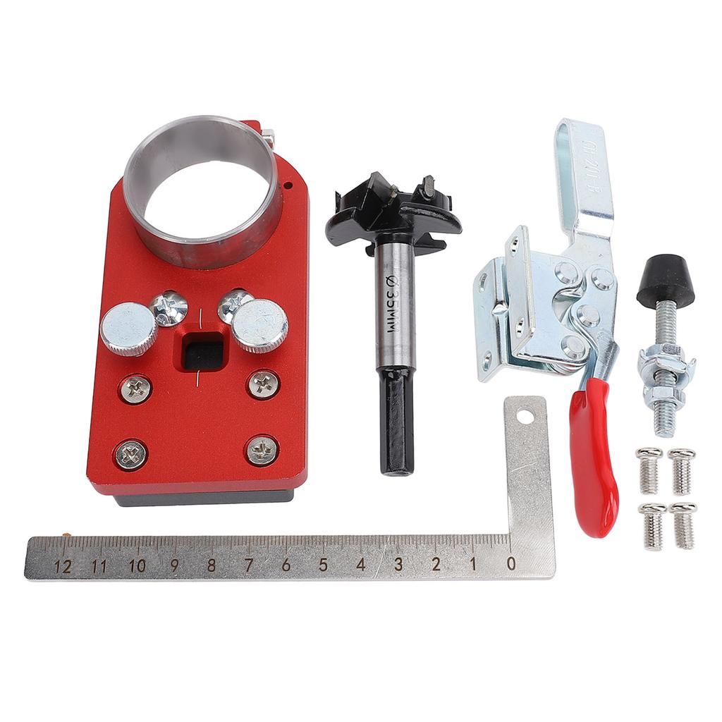 35mm Verdecktes Scharnier Jig Aluminiumlegierung Schranktürscharnier Bohrhilfe mit Lochöffner L-Lineal Q