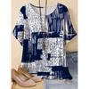 Lebhaftes Kurzarm-Top Frühling & Sommer Bequem Lässig Damen Kurvige Mode Kleidung Übergröße Geometrisches Schickes T-Shirt