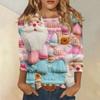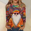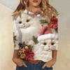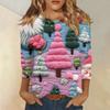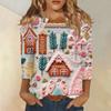 Damenmode und Winter Lässiges Rundhals-T-Shirt mit gebürstetem, geripptem Weihnachtsdruck und Dreiviertelärmeln, Damenbekleidung