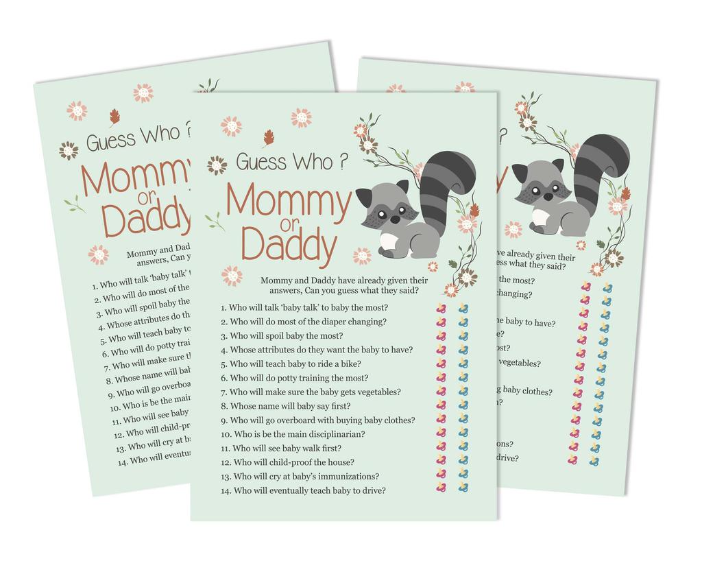 Inkdotpot Mommy Or Daddy Who Said it Game Gender Neutral Animals Set of 50 Fun Baby Shower Game Party Supply