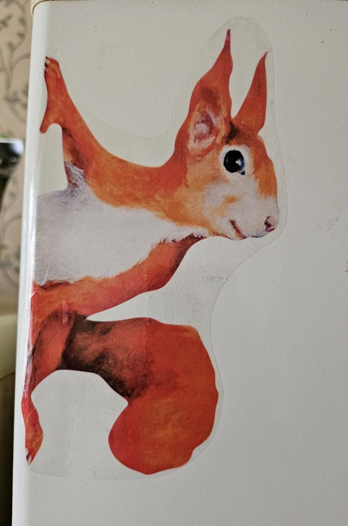 Das Eichhörnchen 🐿️ ist klein. Ich wollte es auf Glas kleben, aber dort sieht man es überhaupt nicht 😔. Ich habe es auf den Kühlschrank geklebt.
