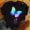 Fashionable Plus Size Color Butterfly Print Simple Base Shirt Loose Fitting Clothes Pure Cotton T-Shirts Women’s