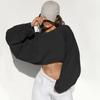 Damen Pullover mit Rundhalsausschnitt, kurz, sportlich, T-Shirt, Strickwaren, langärmelige Oberteile