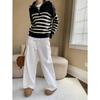 Sinan Retro Gestreifter Pullover mit halbem Reißverschluss und Reverskragen SN6942