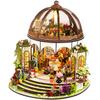 1 Set DIY Mini-Gewächshaus-Kit mit LED-Lichtmöbeln für Kinder und Erwachsene, handgefertigtes kleines Gartenhaus aus Holz, Gebäudemodell, Puppenhaus-Dekoration