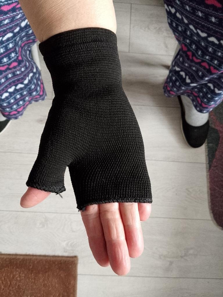Eng gestrickte, enge Handschuhe. Ich habe es für mein Handgelenk genommen