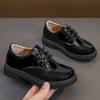 Jungen Lederschuhe Schwarz 2024 Performance Weiche Sohle Britischer Stil Kinder Schnürschuhe Rutschfest Glänzend Runde Spitze Frühling Neu PU