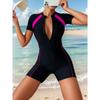 Schlichter einteiliger Badeanzug mit Farbblock-Muster, sicherer Surfanzug mit halbem Reißverschluss für Wassersport, leistungsstarke Wettkampfbademode für Damen