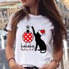 Christmas Animal Merry Chris Print Summer Loose Round Neck Pure Cotton Short Sleeved Shirt T-Shirts Women’s