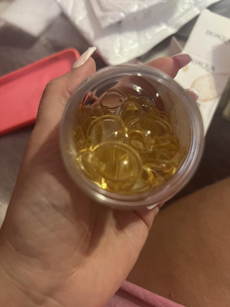 Von dem Produkt bin ich enttäuscht, die Kapseln sind alle zu einem Klumpen verklebt, ich weiß nicht, ob man es jetzt noch irgendwie benutzen kann(((