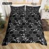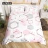 Wabenförmige Bettbezug-Set Queen-Size Geometrie Sechseck-Thema mit Pinken Blauen Neonlichtern Schicker Bettdeckenbezug für Jungen Teenager Mann