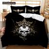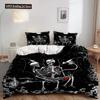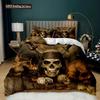 3D Totenkopf Bettbezug Set, Gothic Totenkopf Bettwäsche Sets, Totenkopf Skelett Bettdeckenbezug Full Queen Größe, Halloween Horror Steppdeckenbezug