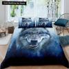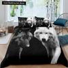 Bettwäscheset mit Weißwolf-Muster Tier Bettbezug Queen King Full Size Bettwäscheset Herren Weiche Polyester Bettdeckenbezug Schwarz Grau