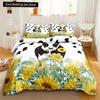 Kuhdruck Bettbezug Tier Kuh Doodle Cartoon Zeichnung Landwirtschaft Tierhaltung Sonnenblume Polyester Bettwäscheset Einzelbett Queen-Size King-Size