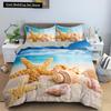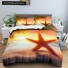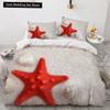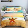 Blue Ocean King Queen Bettbezug Cartoon Seestern Muschel Bettwäscheset für Kind Teenager Erwachsene Meer Strand 2/3tlg. Polyester Bettdeckenbezug