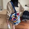 Letter Print Shoulder Bag Large Capacity Contrast Color Tote Cotton Fabric Handwoven Summer Fashion Knitted Handbag ARI