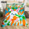 Niedliches Kaninchen Bettbezug Set Twin Queen Buntes Blumen Bettwäsche Set Mikrofaser Botanisch Floral Cartoon Tier Bettdeckenbezug