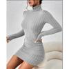 Mode Rollkragen Damen Strick Kurzkleid Herbst und Winter Neu Langarm Rippstrick Hüftbetont Lässige Partykleider Bodycon Schlichte Kleidung 2708