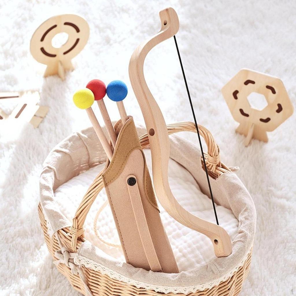 - 【Anregendes kreatives Spielen】:Ausgestattet mit einem tragbaren Köcher und verschiedenen Zubehörteilen regt dieses Bogenschießset aus Holz Kinder zu fantasievollem Spielen im Freien und in Innenräumen mit Freunden an.. Es hilft bei der Entwicklung der Hand-Augen-Koordination, der Aufmerksamkeitsspanne und des räumlichen Vorstellungsvermögens.