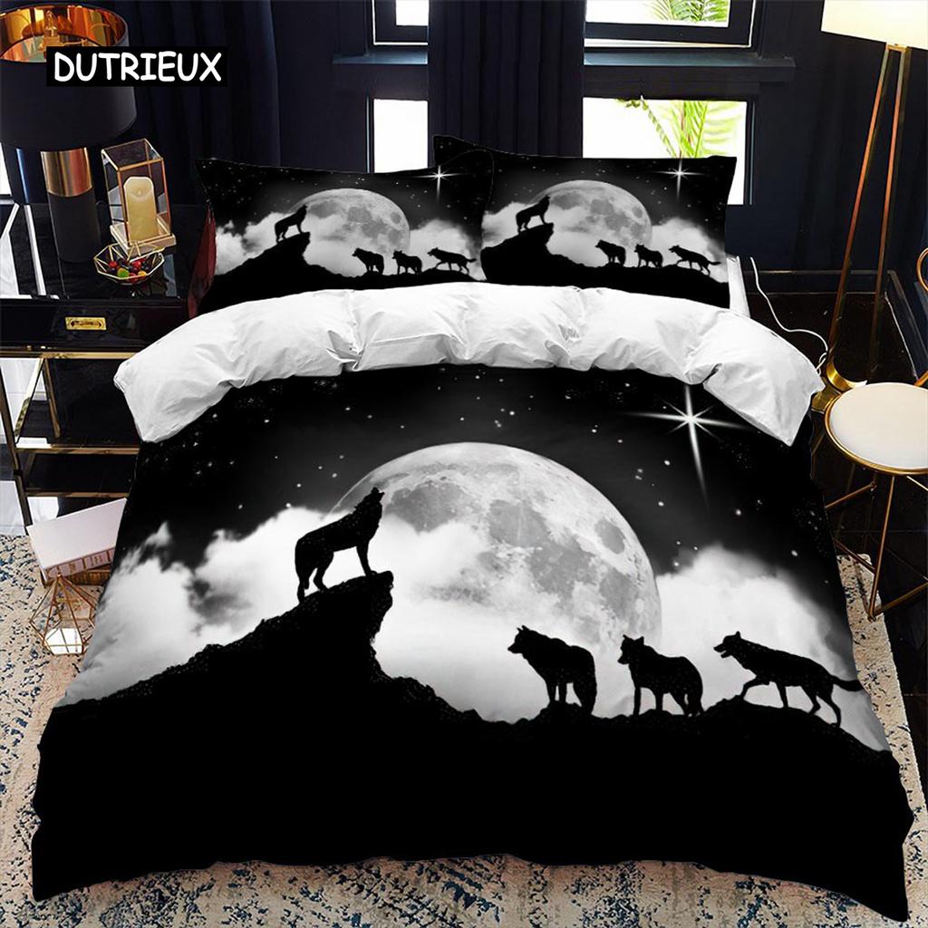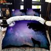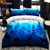 Tier Silhouette Bettbezug Set Heulen unter dem Mond Tier Thema Bettdeckenbezug für Kinder Jungen Mikrofaser King Twin Bettwäsche Set