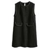 Damen Herbst- und Winter Rundhals Dünnes Gewebtes Tweed Ärmelloses Schwarzes Kleid