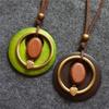 Mode Mädchen Kreativ Einfach Doppelkreis Anhänger Braune Seilkette Handgefertigt Harz Holz Halskette ARI