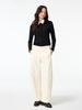 - Wide pants with a barrel silhouette.