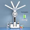 Wiederaufladbare Tischlampe fürs Arbeitszimmer, Schreibtischlampe, Leselicht, LED-Tischlicht mit Ventilator, Leselampe mit LED-Uhranzeige