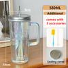 Hochwertige 580ml Glas-Kaffeetasse mit sicherem Edelstahl-Trinkhalm und dicht schließendem Deckel. Heim-Trinkglas mit Henkel.