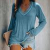 YYFS Damenmode, lässig, Frühling und Herbst, einfarbig, langärmelig, V-Ausschnitt, Blusen und Hemden