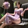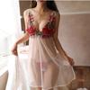 "Elegantes Nachthemd aus Spitzennetz mit Rosenstickerei und Strapsen - 1011"