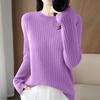 Damenmode Locker Gestrickter Pullover Unterhemd Rundhals Pullover Langarm Einfarbiges Oberteil