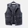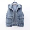 Frühlings- und Herbst Damen Jeansweste Kurz Vielseitig Ärmellos Kapuzenweste Camisole Top