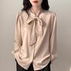 Frauen Blusen Shirts 2025 Frühling Langarm Frauen Bluse Shirt Bogen Kragen Schwarz Weiß Chiffon Bluse Shirt Frauen Tops J862
