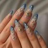 24 Stück Neujahrs-Nagel zum Anziehen Mandel-Nagelstück Jahr der Schlange Metall-Nagelkunst Falscher Nagel Stern Mond Nagelstück zum Anziehen