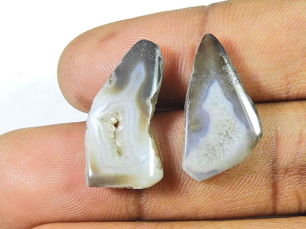 18 Karat Schwarzer Scheiben-gefärbter Druzy Achat Passendes Paar Ausgefallener loser Edelstein 12X23MM SK-2220