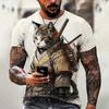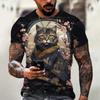 Herren-T-Shirts mit japanischem Samurai-Katzen-Aufdruck, lustige T-Shirts mit 3D-Tiergrafik, Sommer, lässig, O-Ausschnitt, lockere Oberteile, kurzärmlige T-Shirts