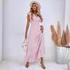 Damen Frühling Sommer V-Ausschnitt Taille Langes Kleid mit Lotusblatt-Ärmeln Hohe Taille Freizeitkleider