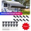 Einfach zu verwenden: Die Markisen-Campingzubehörhaken können einfach durch das Loch im Hakenhalter montiert und entfernt werden. Sie können sie direkt überall dort aufhängen, wo sie automatisch in die Markisenrollenkanäle des Wohnmobil-Sonnenschirms gleiten können, und Sie können auch etwas direkt an die Haken hängen, ohne viel Zeit in Anspruch zu nehmen