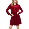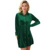 YYFS Damenmode Frühling Herbst Einfarbig Druck Langarm POLO Hals Lose Taille Casual Kleider