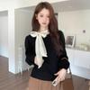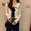 Tie Sweet Doll Collar Bow Tie Sweater, Spring, Autumn and Winter Skinny Cover Up Meat with Long Sleeve Tops, Knitted Inner Ladies Tops