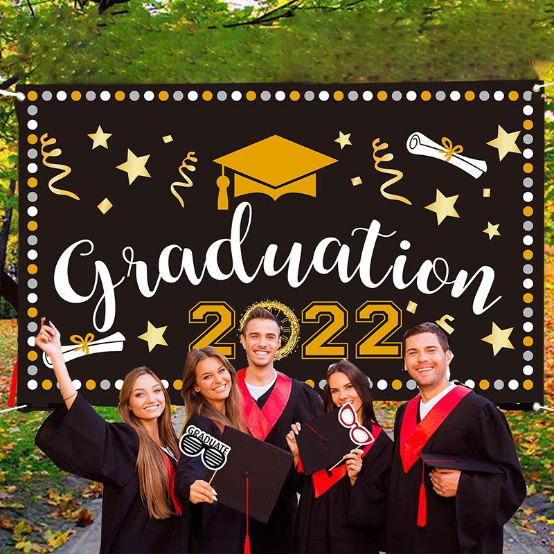 Abschlussfeier Hintergrunddekoration Abschlussjahrgang 2022 Kuchentisch Fotohintergrund Glückwunsch Absolventen Absolventenhut Foto-Requisiten