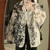 Langarmshirt mit Graffiti-Print für Damen, lockeres Revers, lässige Damenblusen, einreihig, vielseitige Strickjackenoberteile